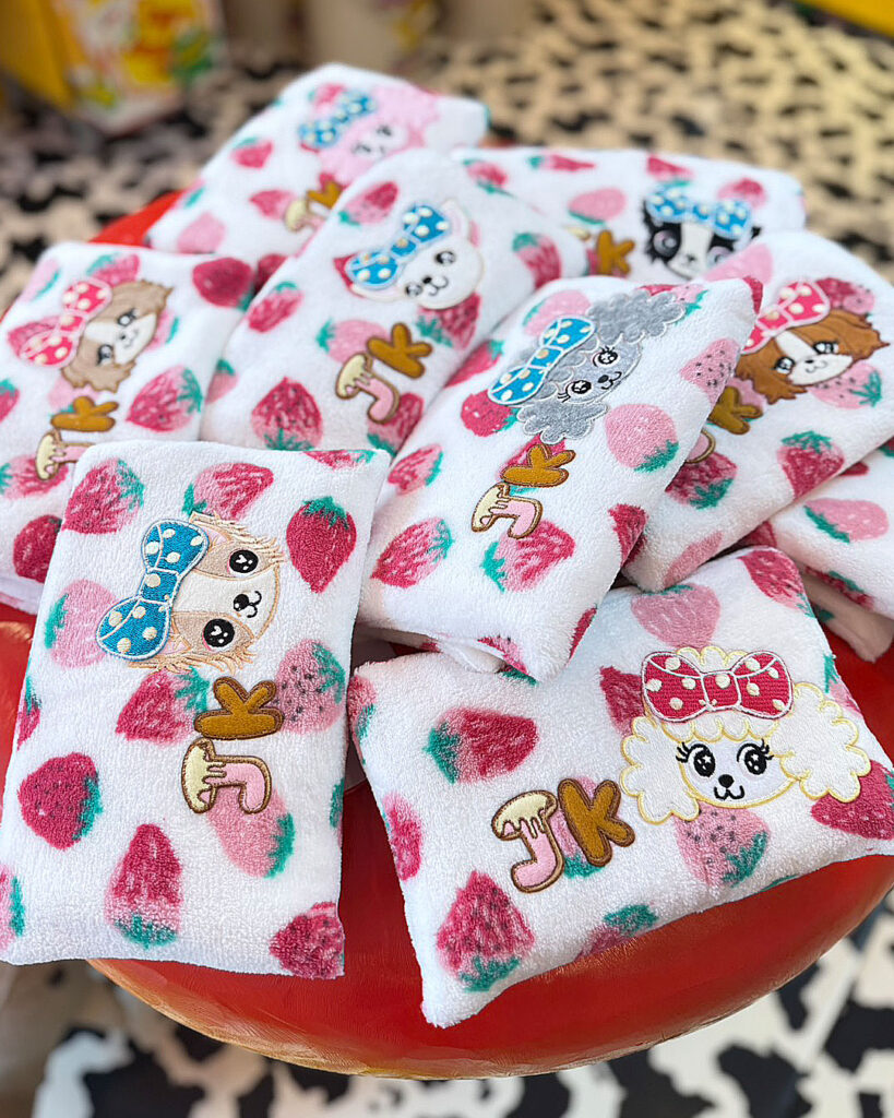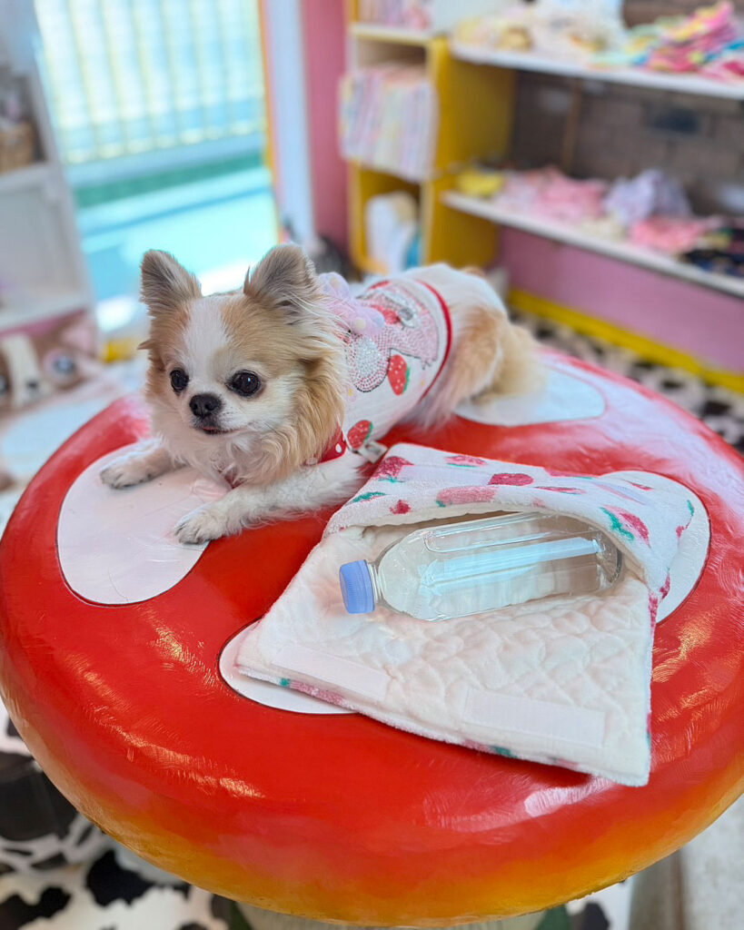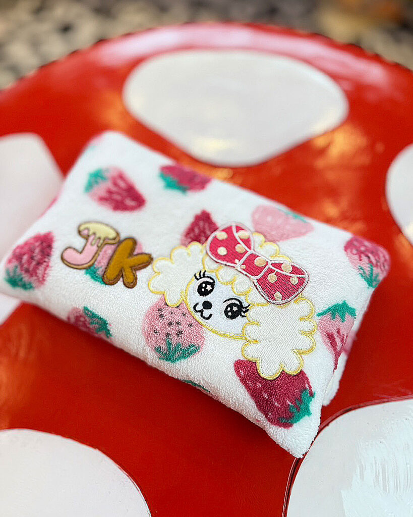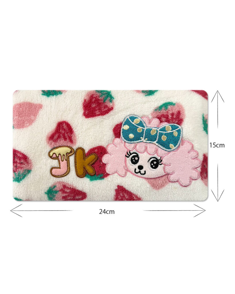 J&Kanimalsから、肌触りの良い保冷剤ケースの登場です~♪表地には手書き風のいちごプリントの入ったパイル布を使用してJ&Kオリジナルキャラクターをつけました\(^_^)/キャラクターには大きなリボンをと周りにはJKのロゴワッペンをつけました♪裏地には裏にビニール加工をした布地を使用していますので表地が濡れにくくなっています。少し綿を入れてますので保冷剤を入れても、ふかふかですヨ=^-^=カートの中に敷いたりキャリーバッグのクッション代わりにしても良いですネ~(゜▽゜)