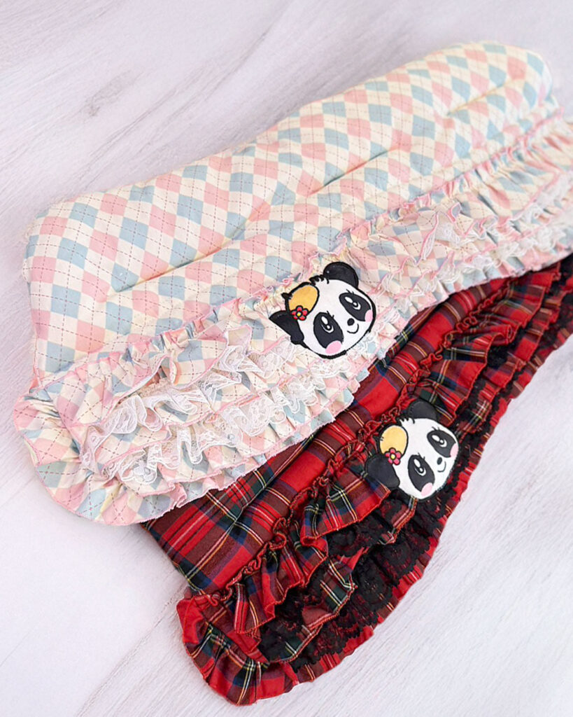 J&Kanimalsから、ふぁふぁのカートカバーの登場です~♪これからの季節にぴったりの赤チェックと優しい色合いのアーガイル柄の2色にレースとフリルをつけて華やかに仕上げました\(^_^)/ベレーちゃんがポイントになって、とてもラブリーです♪2種類の綿を使用してボリュームとふぁふぁ感を出しました=^-^=ペットカートの乗りごこちがさらにアップしますヨ(゜▽゜)