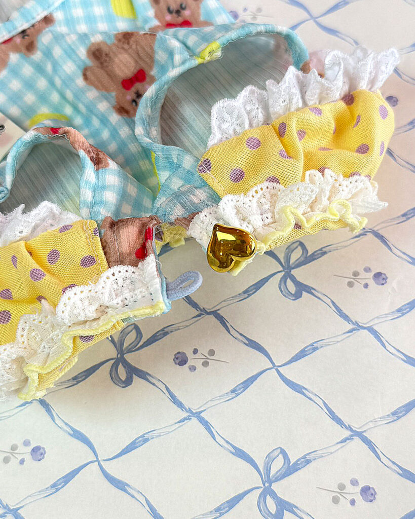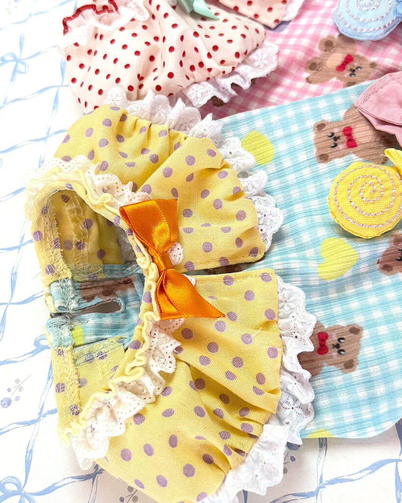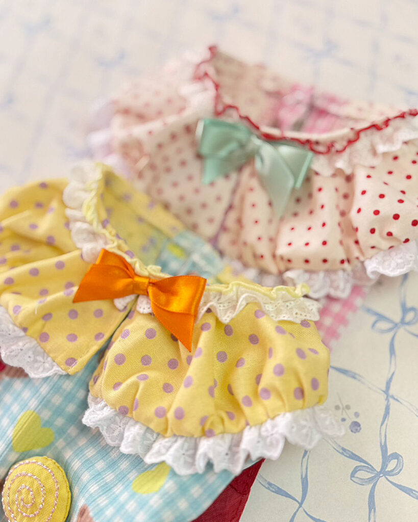 ふっくら衿には、たっぷりギャザー+レース&フリルで