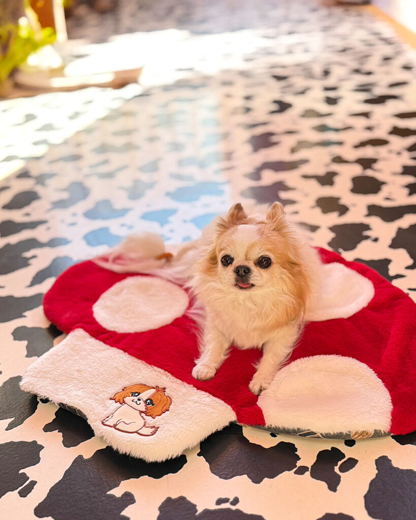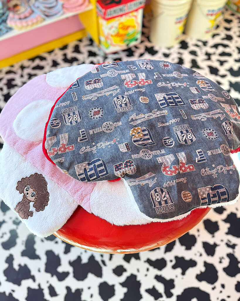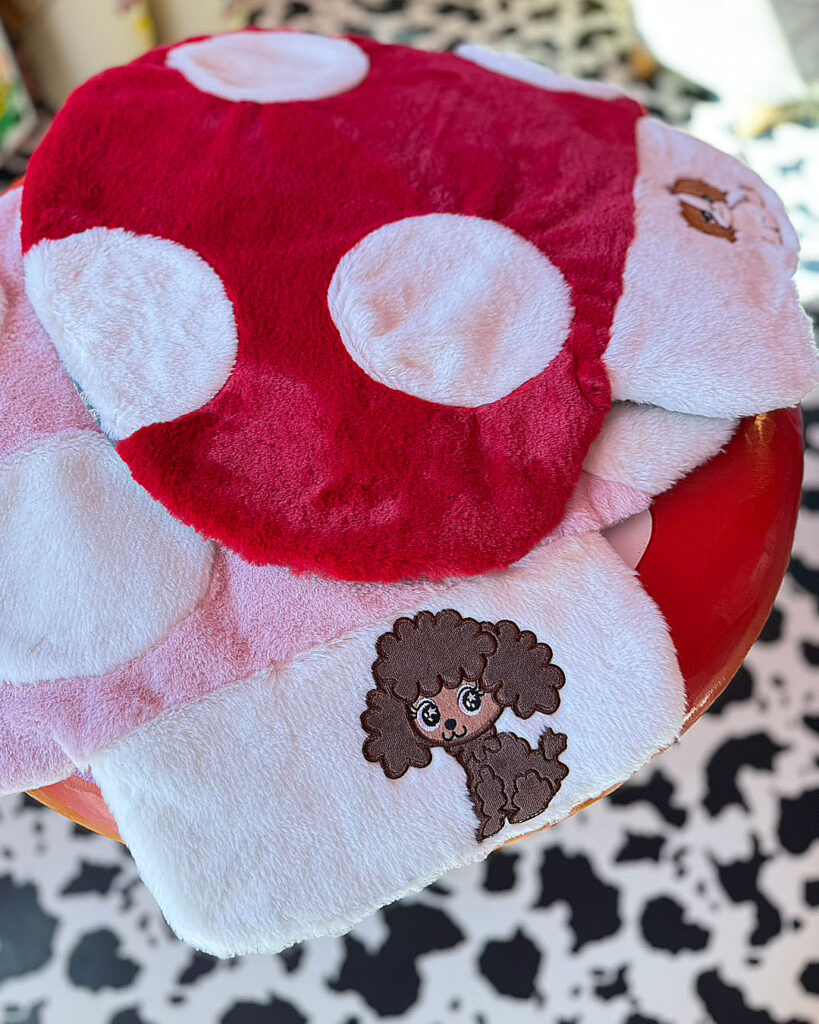J&Kanimalsから、きのこ好きには、たまらないマットが登場しました~♪ふぁふぁで肌触りの良いファを使用して、J&Kオリジナルキャラクターをポイントでつけました~(^^♪中に綿が入っていますので、ほどよい厚みがあります♪裏地にはデニムを使用してポップに仕上げました\(^_^)/丸みのある、きのこマットがお部屋をキュートにしてくれますね~(゜▽゜)