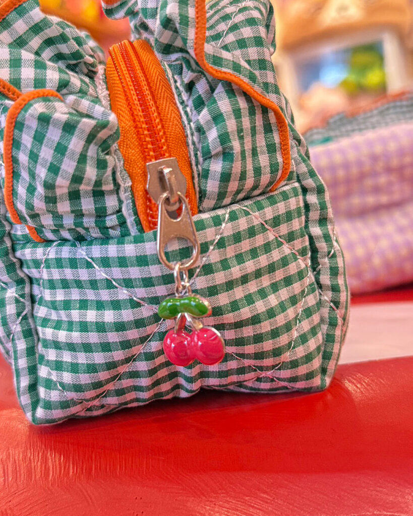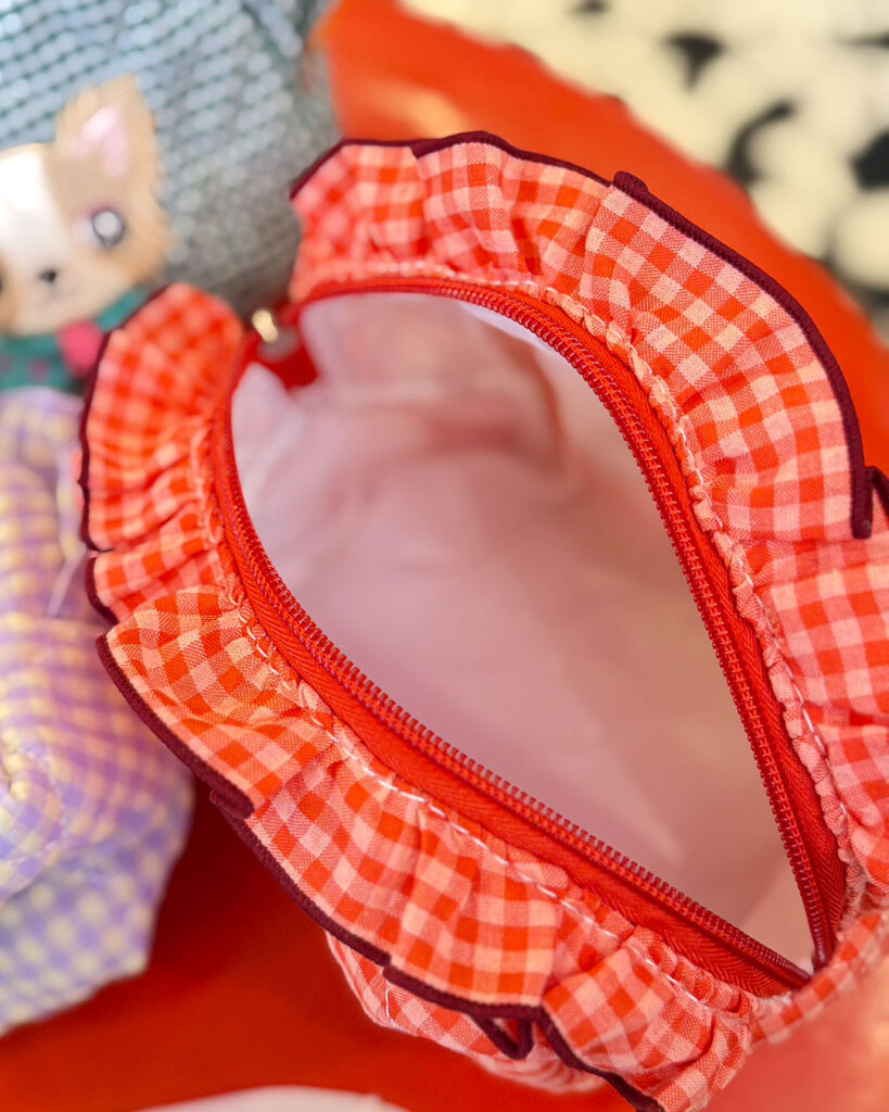 チェックとフリルがキュートなメイクポーチです(^^♪