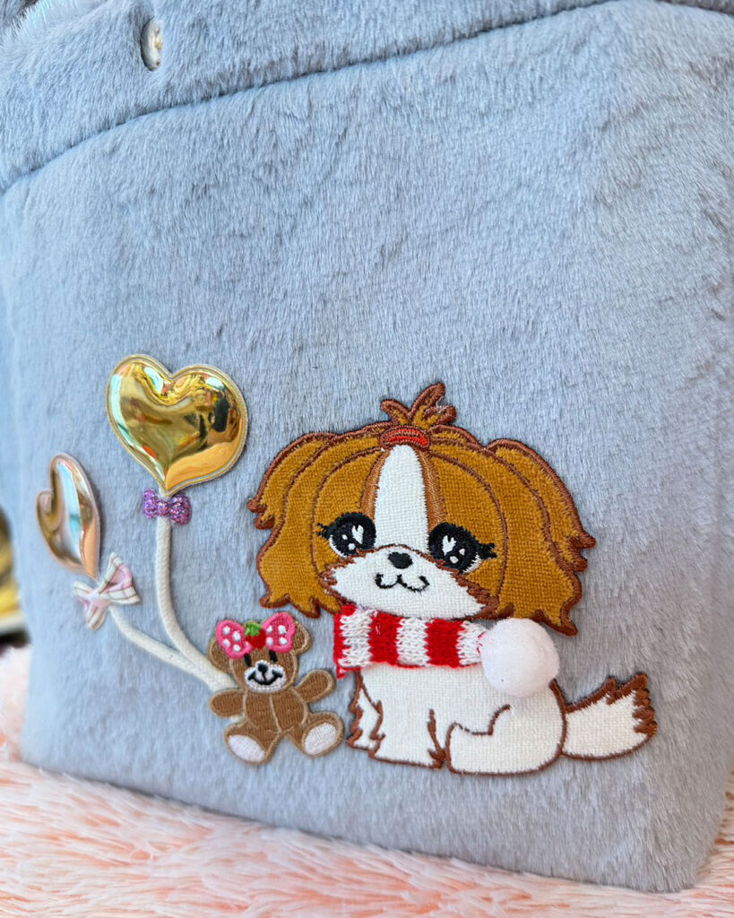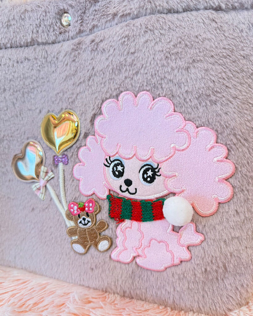 肌触りの良いファーにJ&Kオリジナルキャラクターをつけて周りには、キラッと輝くハートの風船をつけました♪