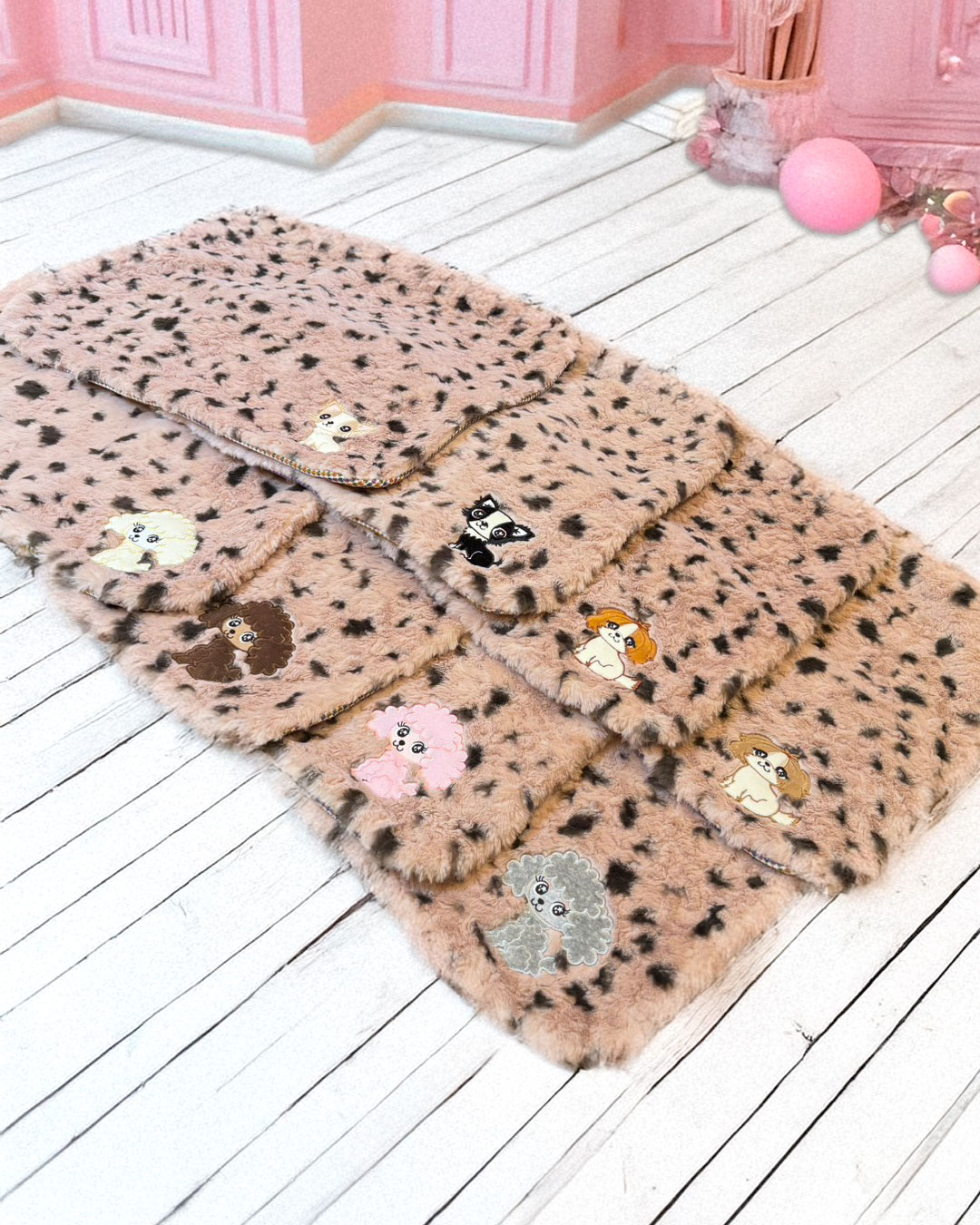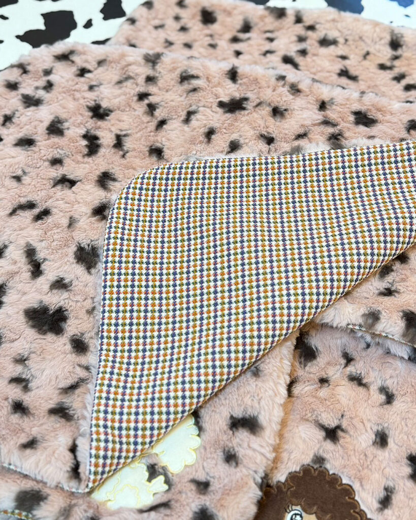 J&Kanimalsから、ふゎふゎのマットの登場です~♪表地は、とても肌触りの良いファを使用して、J&Kオリジナルキャラクターをつけました♪裏地はツィードのチェック柄を使用しました。バギーの中に使用したり、お部屋でベッド代わりに使用したりとマルチに使えるのが嬉しいですね~(゜▽゜)